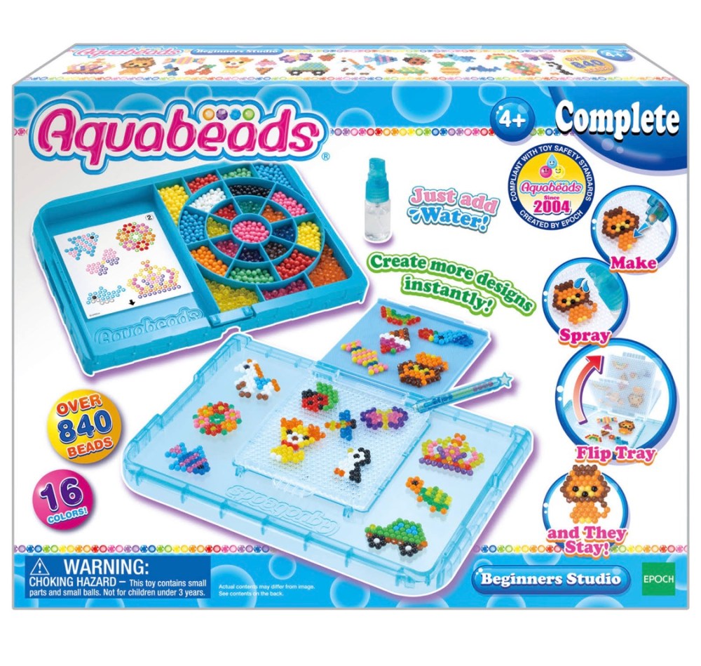 Aquabeads Beginners Studio Retailing at around $20, Aquabeads beginners studio will offer hours of tactile play for older toddlers. Aquabeads are the original water-activated bead craft product. Made from the highest quality materials, Aquabeads are fun and safe for the entire family. The Beginner’s Studio has everything you need to create more than a dozen bead art creations – the possibilities are endless! Includes over 840 jewel and classic beads in 16 colors, case with bead palette and layout table, bead pen, bead peeler, sprayer, 2 double-sided template sheets and instructions. Creating Aquabeads is easy – it’s as simple as make, spray and they stay!