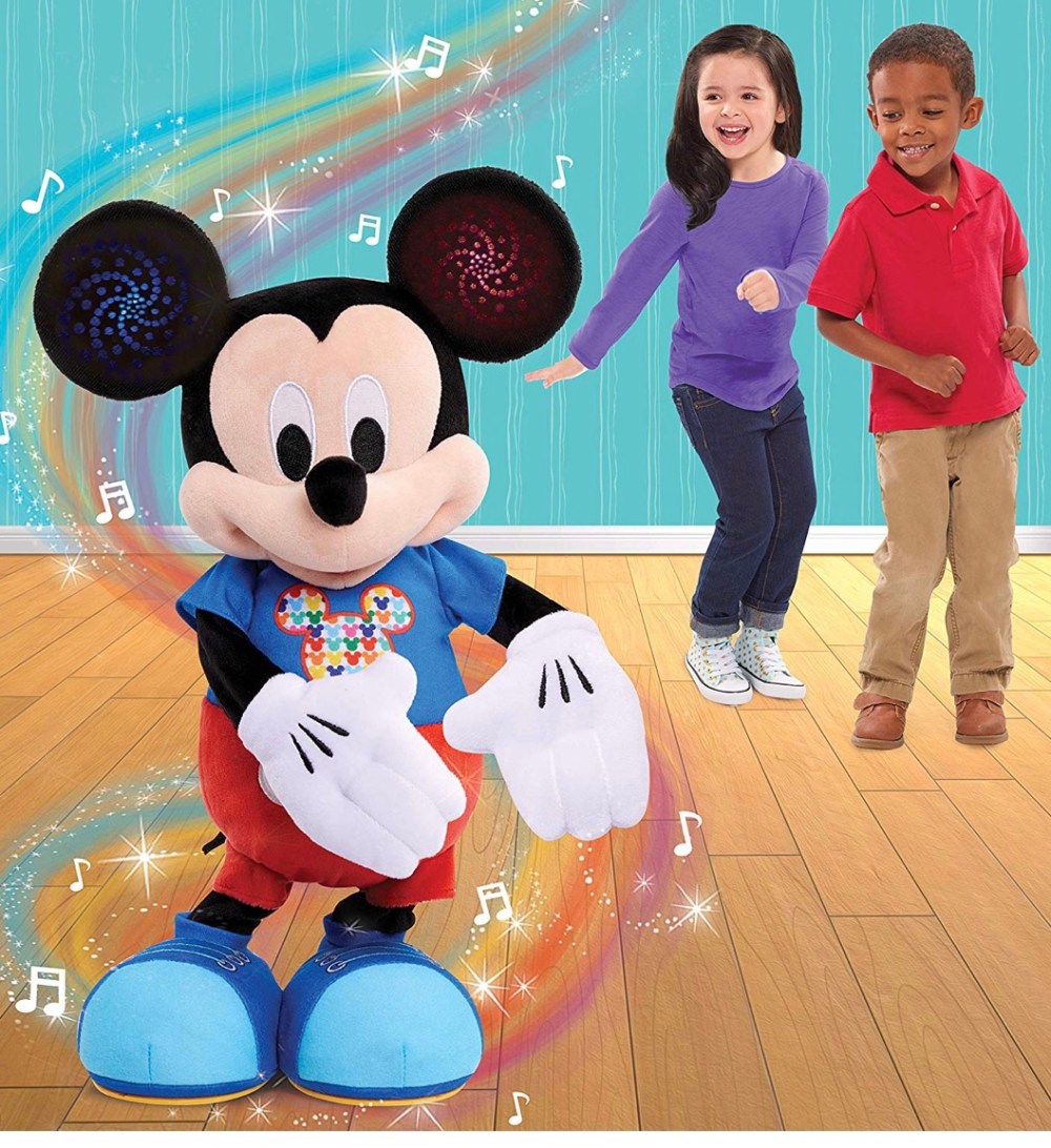 Mickey Mouse Hot Dog Dance Break Mickey Plush At less than $40, this Mickey will entertain and delight any Mickey loving tot! Kids will love singing and dancing with Disney Junior’s hot dog dance break Mickey. Sing along with Mickey to a new version of the “hot Dog song” and do Mickey’s fun and wacky dance together. Mickey’s ears even light up to the beat! This interactive Mickey plays red light, green Light game and color detective! In the red light, green Light game, Mickey plays music and dances. When the red light flashes, The music stops, and kids freeze in place for silly fun. In the color detective game, kids listen to Mickey’s clues to see if they can guess the color he is thinking of. Mickey comes dressed in a new trendy look, featuring a colorful graphics. Kids will love playing games with Mickey and learning his fun dance moves.
