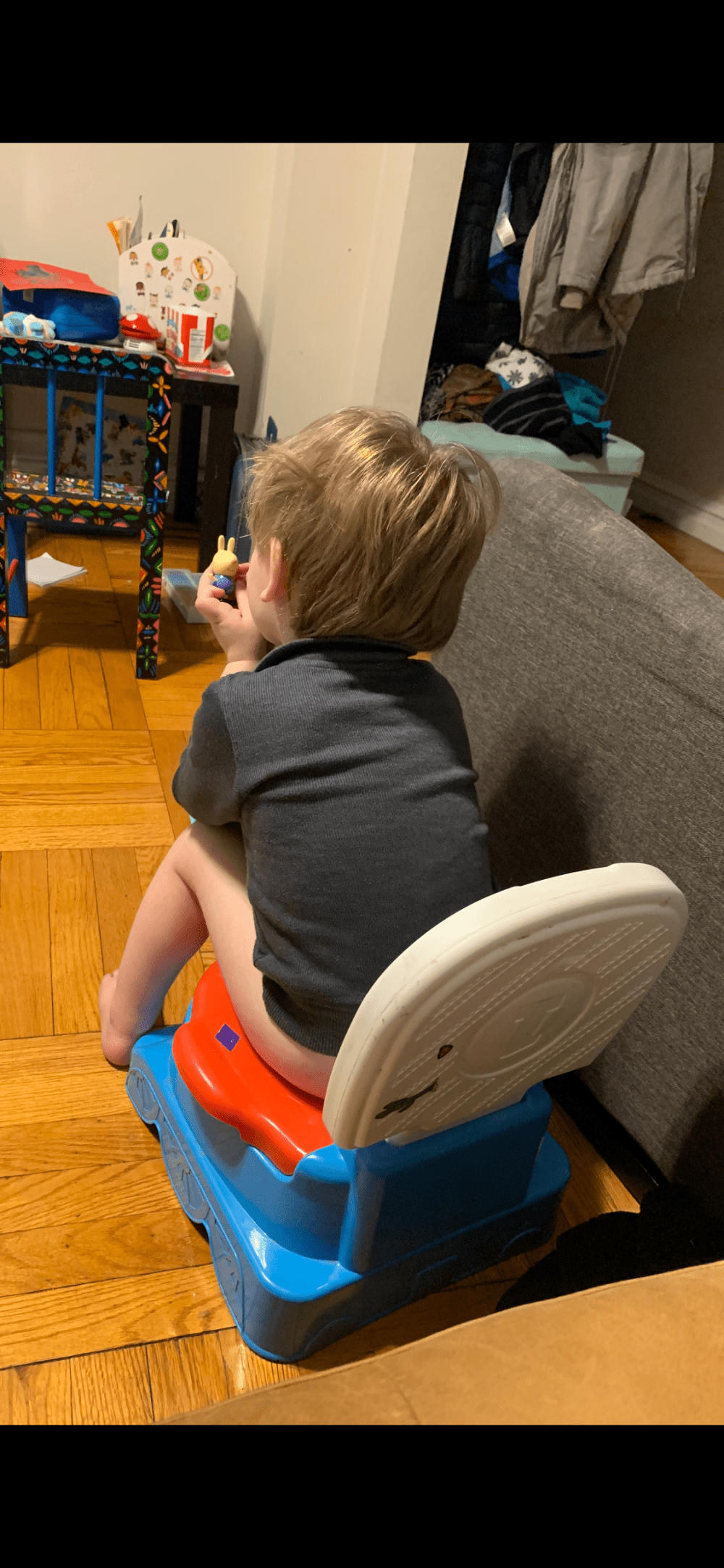 There are so many potty training methods out there it is overwhelming. We didnt use a specific method- just made up my own way! If you are sheltering in or staying home, now is a great time to try! The way we did it was slowly and it turned out to work really well for us bc our life style didn’t at the time support staying in the house all the time (but it does now!) We started familarizing my son with the potty when he turned 2. We bought a few potties and put one in the bathroom and one in the living room. Whenever we were home for about 6 months he would be in underwear and I would encourage him to use the potty. He would get a small potty prize for using the potty. (sticker, chocolate chip, whatever I had collected for him.) I never attemted to take him out of the house without underwear until he was always using the potty at home. Once he was comfortable using the potty at home, I would take him out in underwear if we were going somewhere close or somewhere I knew there would be easy access to a toilet (Gymnastics classes, local playroom and library, restaurants) but still keep in pull-ups if it was far. Then when I knew he was comfortable telling us he has to go potty we started to take him everywhere in underwear. At that point we also removed the living room potty and got a ladder potty for the bathroom to get him used to using a real toilet. He still perfers his small potty but is comfortable using both. I felt like this was much easier way of doing it. He is still in pull-ups for naps and night sleep and I don’t feel the need to change that anytime since he is still in a crib – turned 3 one month ago.