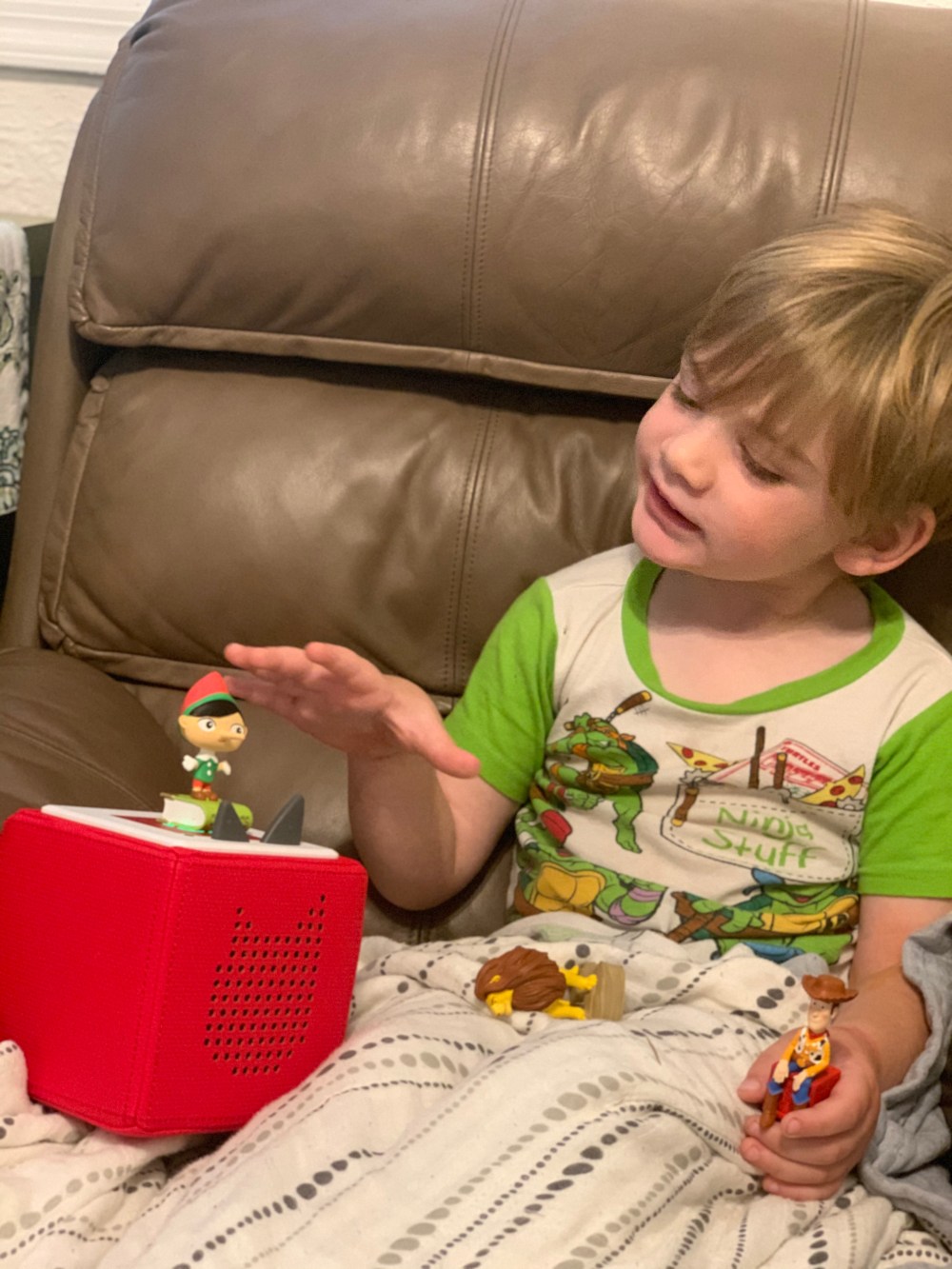 We recently were gifted the brand new Toniebox. This new, fun interactive digital listening device has decreased our screen time and made bedtime so much more fun! The Toniebox is an adorable box that plays different stories when you attach a character to the top of the box. They have all the familar Disney stories like Lion King, Toy Story and Little Mermaid as well as the classics like The Wizard of Oz and Cinderella. The stories and songs are narrated and are engaging and fun for both kids and parents! With blended learning, we now have a lot more screen time in our day, so Tonies is a great way to have a fun, interactive story without more time in front of the TV and computer.