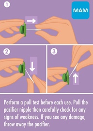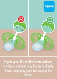 • These sizes are recommendations for your baby’s maximum comfort and safety; if your baby likes a MAM pacifier that is not the ideal size for his or her age, not to worry! It is still safe to use as long as all other safety guidelines are followed: http://bit.ly/mampacifiersafety .